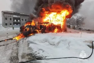 Днем 5 февраля поступило сообщение о том, что на автозаправочной станции в поселке Солнечный Сургутского района загорелся бензовоз.