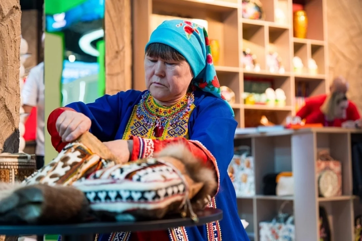 В первый день делегаты приняли участие в главной пленарной сессии «Технологические хабы — новый промышленный ландшафт Евразии». Осмотрели стенд Минпромторга РФ — среди участников «Торговый Дом «Эконо-Тех». Также посетили стенд «Универмаг» Национального центра «Россия». Югорские мастерицы Игишева Мария и Федотова Елена на стенде «Универмага» продемонстрировали технологию пошива мехового орнаментированного мешка (тучан хир) — мешочка для рукоделия. Пошив таких сумок — часть традиционных промыслов коренных народов Севера. Ремесло связано с выделкой шкур: для изделий используют оленьи шкуры, а декор выполняют в технике меховой мозаики.